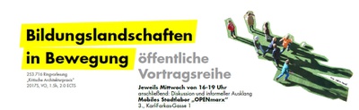 Im Rahmen der Ringvorlesung „Kritische Architekturpraxis - Bildungslandschaften“ des Sondermoduls "Bildungslandschaften in Bewegung" spricht Barbara Feller darüber, warum Architektur- und Baukulturvermittlung für junge Menschen sinnvoll ist und stellt einige Projekte vor.Präsentiert wird dabei auch die österreichweite Vernetzung bink Initiative Baukulturvermittlung für junge Menschen, die in dieser Form einzigartig ist.